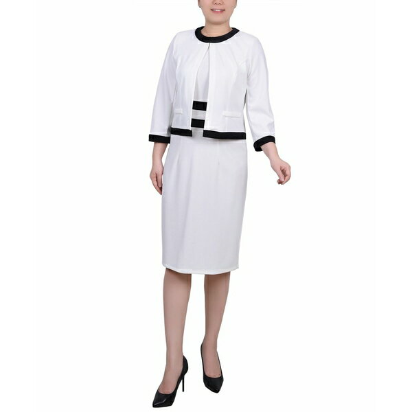ニューヨークコレクション レディース ワンピース トップス Women's Elbow Sleeve Colorblocked Dress, 2 Piece Set White, Black