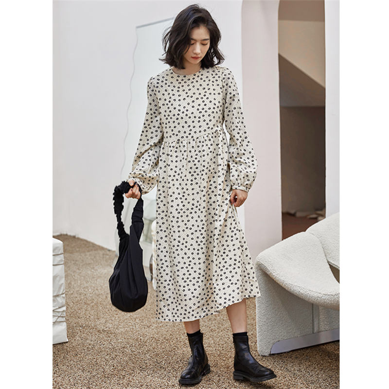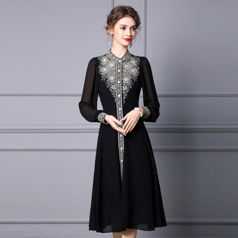 おしゃれ 韓国風 花柄 長袖ワンピース【大きいサイズ レディース 秋冬 結婚式 きれいめ タイト フォーマル 大人 上品 チュニック one-piece】