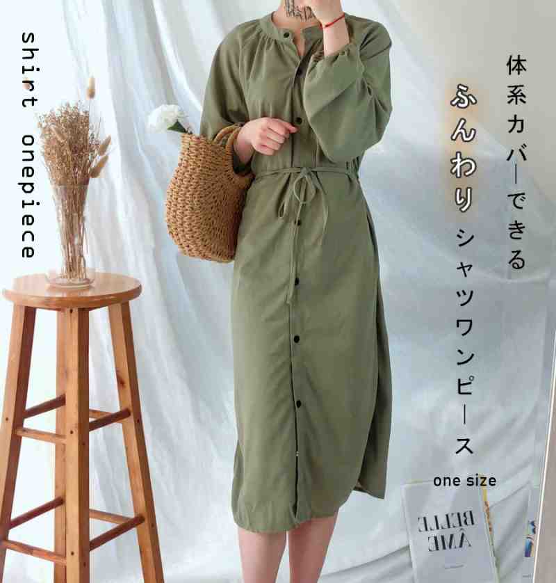 ■サイズ(単位:約cm)freesize(詳細準備中)■カラーグリーン■伸縮性なし■裏地なし■生地の厚さやや薄い■透け感ややあり■素材綿80%、ポリエステル20%■コメントふんわりとした大きめのデザインで、動くたびにゆらゆらと女性らしいシルエットがきれい。ワンピースとしても、ボタンを全部外して羽織り物としても。、紐ベルトで調節が可能、より女性らしい雰囲気をだすこともできます。