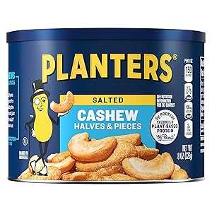 PLANTERS Salted Cashew Halves & Pieces, Party Snacks, Plant-Based Protein 8oz (1 Canister)