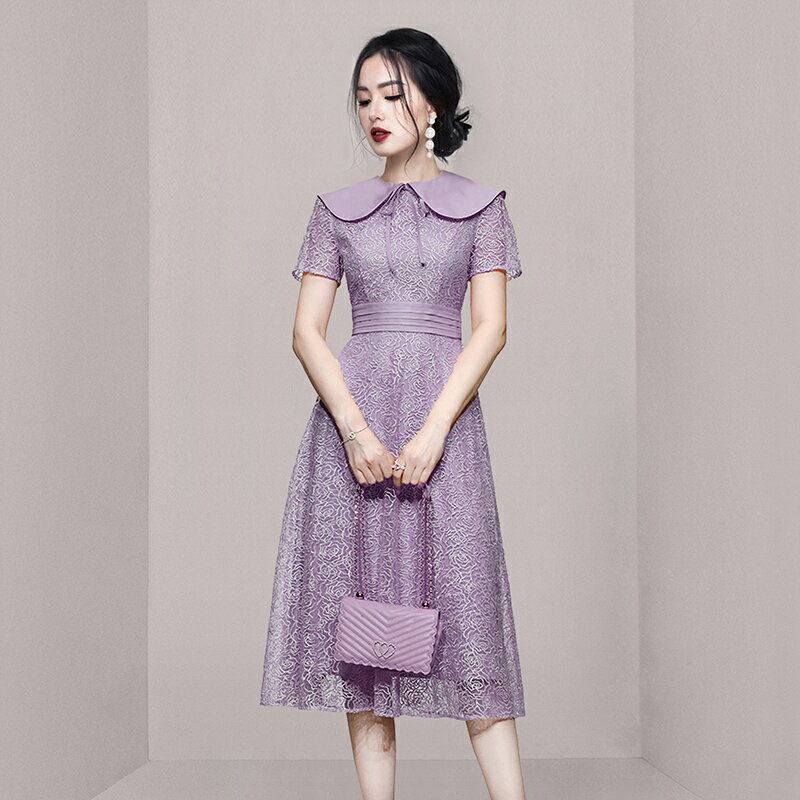 半袖総レースミディ丈ワンピース ■ ワンピース 入園式 ワンピ 結婚式 二次会 入学式 大人 上品 卒業式 OL