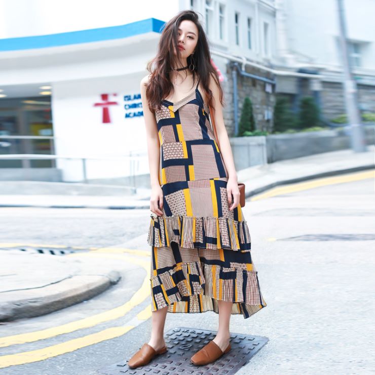 ラウンド模様キャミソールワンピース ■ ワンピース 結婚式 ドレス 結婚式 二次会 入園式 卒業式 大人 上品 入学式 OL レディース ロング丈 柄物 春 夏 秋 冬