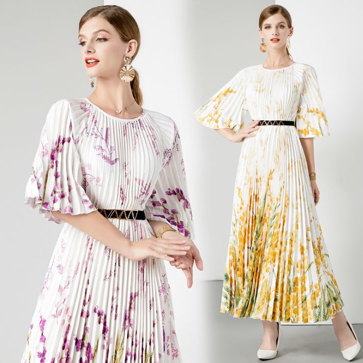 花柄プリーツワンピース ■ ワンピース 入園式 ワンピ 結婚式 二次会 入学式 大人 上品 卒業式 OL