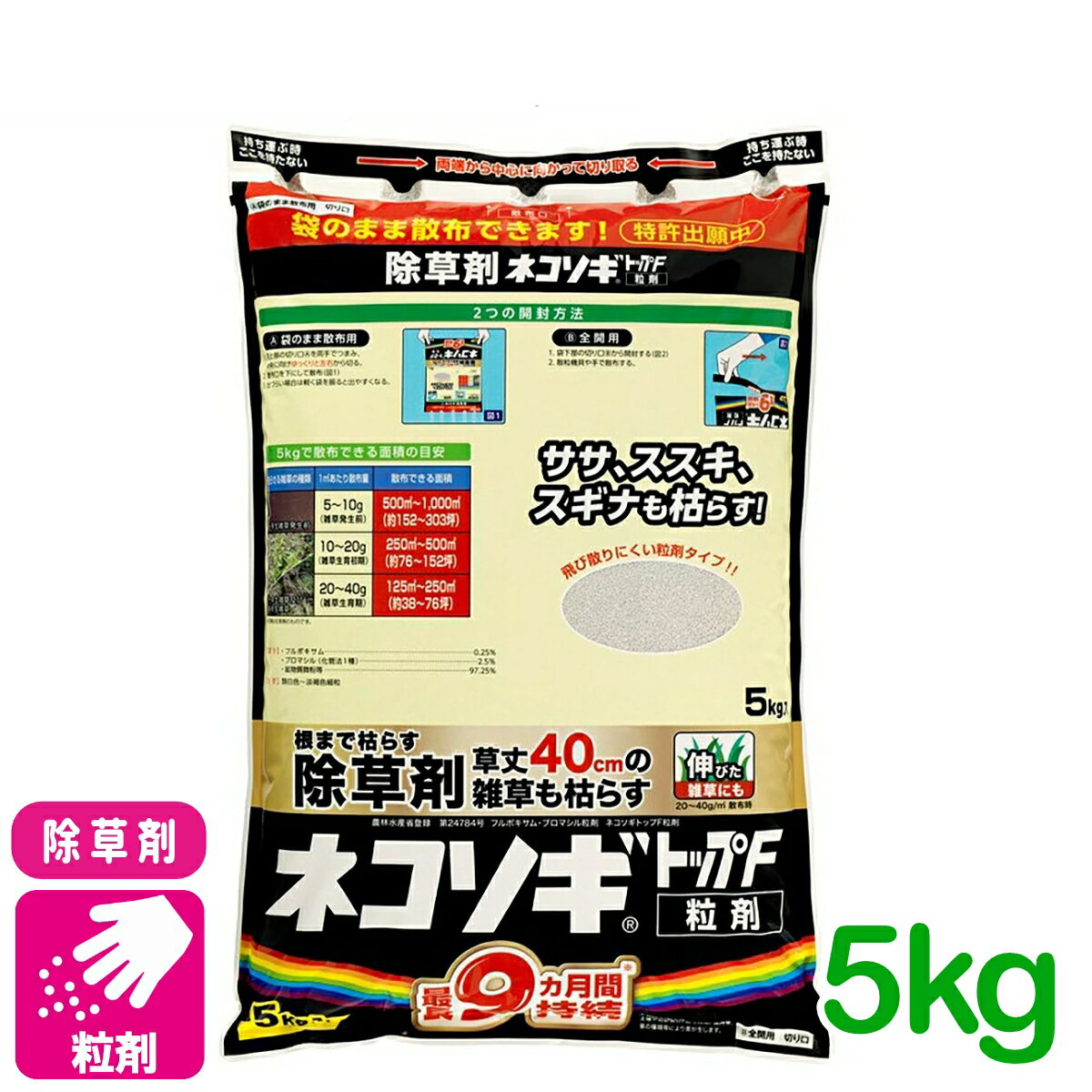 除草剤 ネコソギトップF粒剤 5KG レインボー薬品 スギナ メヒシバ オヒシバ 農耕地 非農耕地 宅地周辺 雑草 農薬 農業