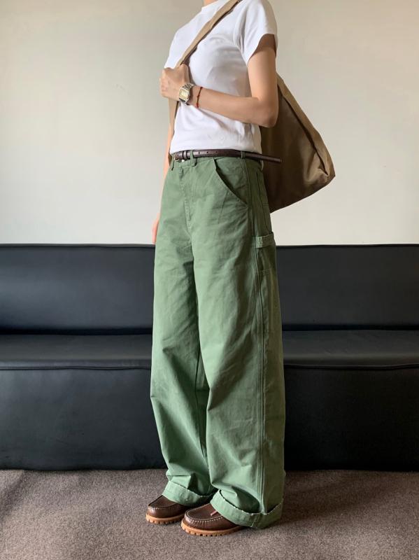 ワークパンツ レディース テーパード ポリエステル ミリタリーグリーン カジュアル ゆったり S M L XL XXL XXXL