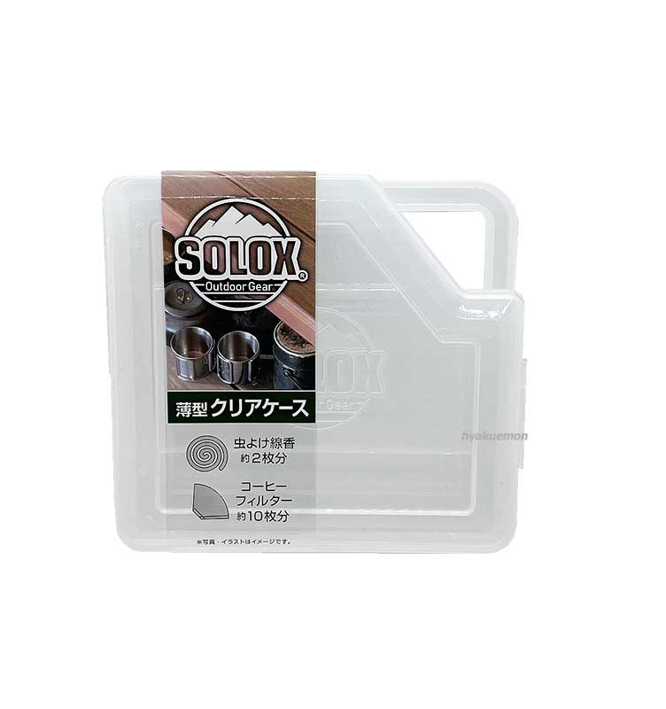 薄型のクリアケースです。 虫よけの線香は約2枚、コーヒーフィルターは約10枚収納可能です。 持ち運びに便利な取っ手付。 本体サイズ(約):W144×H130×D18mm 材質:ポリプロピレン 耐熱:80℃ ※食品用の保存容器ではございません ※完全密封の容器ではございません