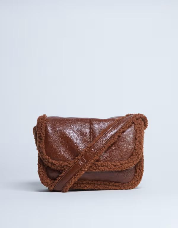 トップショップ レディース バッグ ショルダーバッグ Topshop Solo borg trim shoulder bag in tan TAN タン
