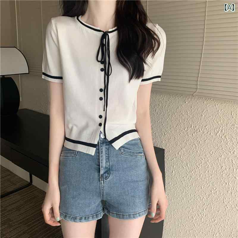 レディース ロングカーディガン シアー サマーニット きれいめ 体型カバー ストラップ 衝突 色 ニット 半袖 カーディガン 夏 丸 首 ボタン 感 上着 短い 香り 風 修身 女装