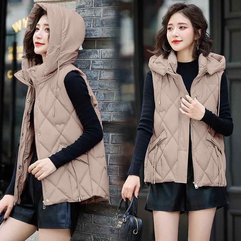 ・カテゴリ: ベスト/ジレ・タイプ: オープンフロント・スタイル: エレガント通勤、スウィート&フレッシュ・対象性別: レディース・対象年齢: 大人・主な素材: 再生セルロース繊維 80〜90%・詰め物: ダウンコットン・柄: 無地・デザイン要素: ポケット・ネックライン: フード付き・前開き: ジッパー・着丈: 標準丈 (約50〜65cm)・シルエット: スリムフィット・カラー展開: オフホワイト、カーキ、コーヒー、ブラック・サイズ展開: L、XL、XXL、XXXL