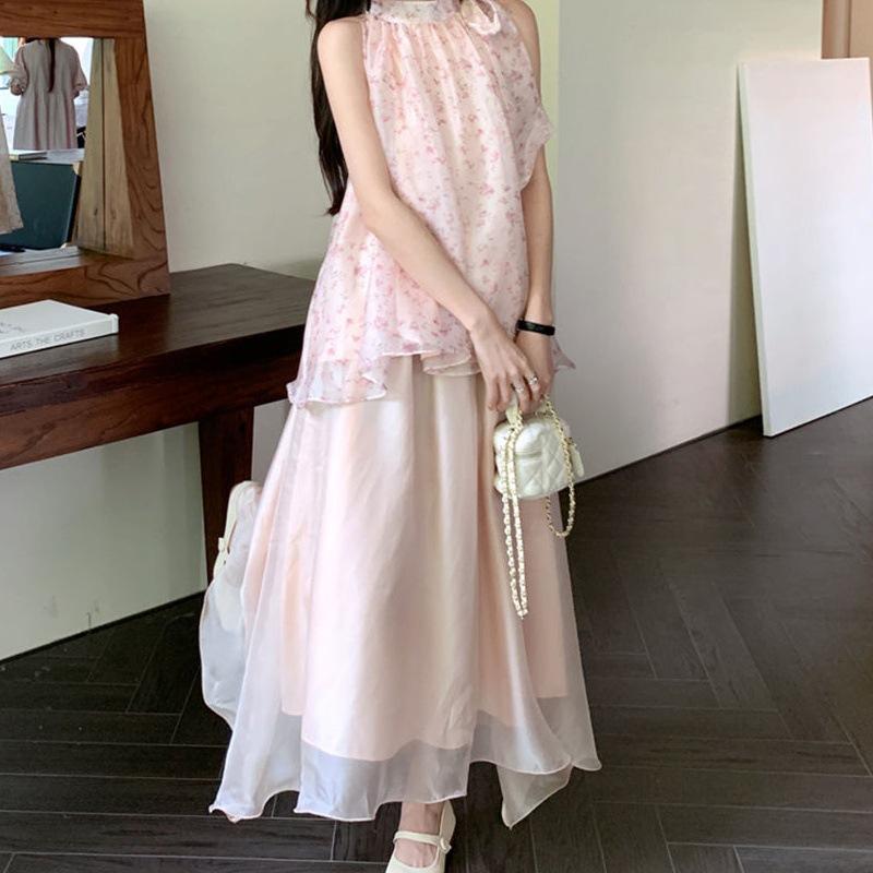 ・カテゴリ: カジュアルセットアップ・スタイル: 日韓カジュアル、韓国系・主な素材: ポリエステル・袖丈: ノースリーブ・柄: 3D効果・デザイン要素: パッチワーク、アップリケ、無地・性別: 女性・セット形式: スカートセット・バリエーション: ピンク小花柄トップス、ピンク半身スカート、ピンク小花柄トップス&半身スカートセット・サイズ展開: S、M、L、XL