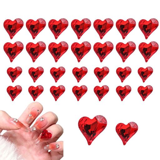 【30個セット】セット内容:ネイルストーンハート30個入り。8mmx9mm:15個、11mmx12.3mm:15個。※もし数が合わない場合は、当店に連絡してください。 【きらきら】ネイルパーツハートはダイアモンドのごとくたくさんの切断面を持ち、ご指先をキラキラと輝いています。 【ぷっくり】赤いハートストーンはぷっくりした設計で、目に付き、存在感にあふれています。 【クリスタルの素材】ハートのネイルストーンは高品質のクリスタルで作られており、いつまでも光沢感を保つことができます。 【適応場合】ネイルパーツと組み合わせて使っても単品使いも可能です。ハンドメイドの素材としても使えます。