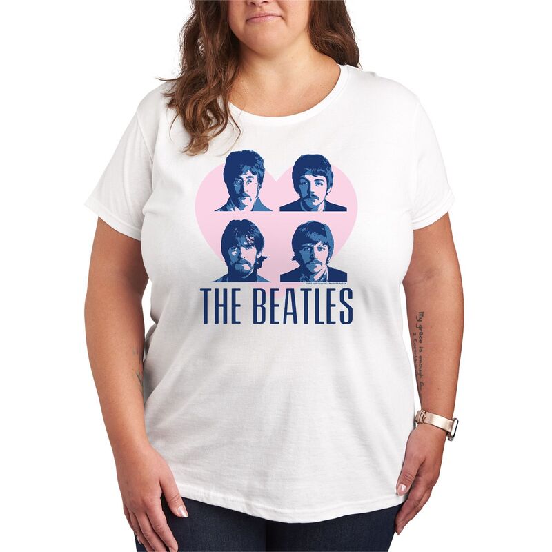 アニメキャラクター レディース トップス Tシャツ プラスサイズ グラフィック Licensed Character Plusize The Beatles Heart Graphic Tee White ホワイト