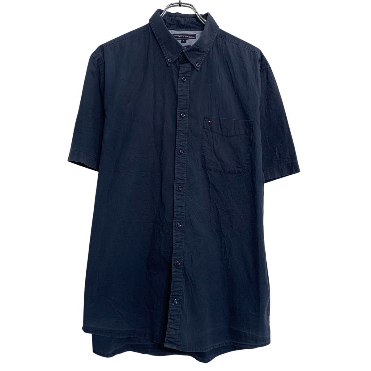 【中古】【古着】 TOMMY HILFIGER 半袖 無地シャツ XL ネイビー トミーヒルフィガー ボタンダウン ビッグサイズ 胸ポケット 古着卸 アメリカ仕入 a703-6154