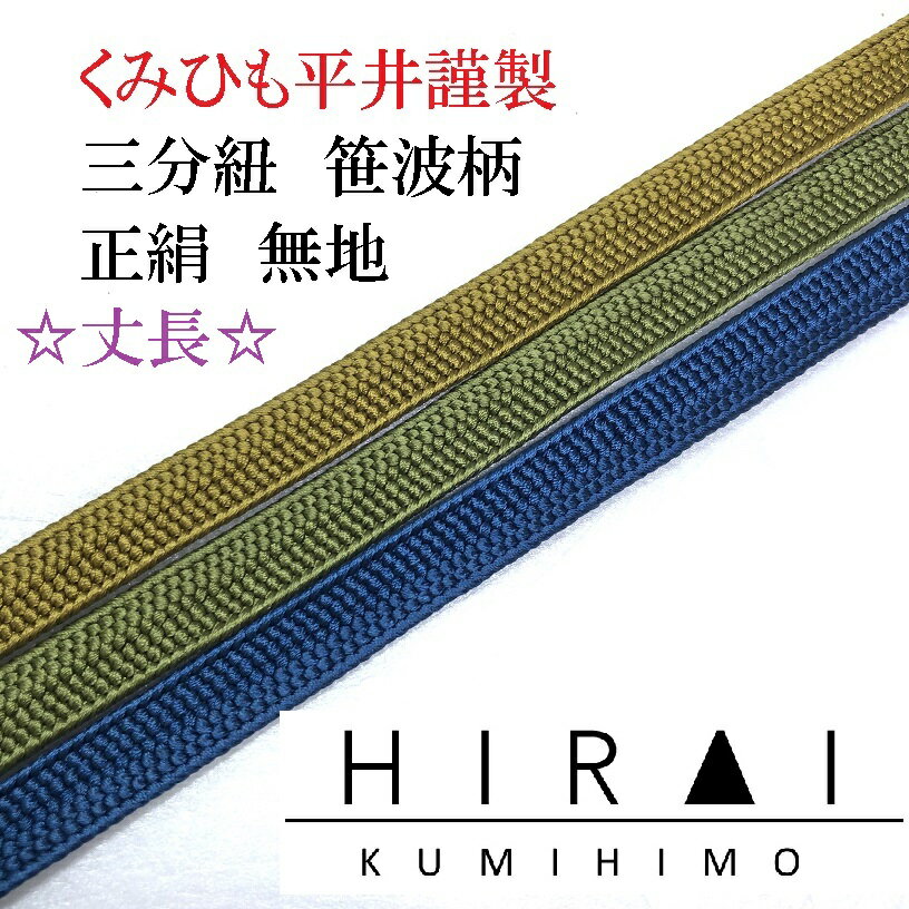 ★受注生産★ 丈長 三分紐 笹波組 正絹 無地 正No.218.219.222 約150cm 幅8.5〜9mm 国産 伊賀 三重県 帯〆 帯留 三分〆 平紐 細紐
