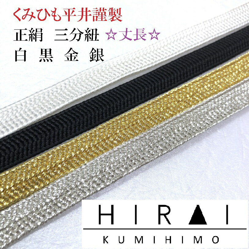 ★受注生産★ 丈長 三分紐 金 銀 白 黒 正絹 約150cm 幅8.5〜9mm 国産 伊賀 三重県 帯〆 帯留 三分〆 平紐 細紐