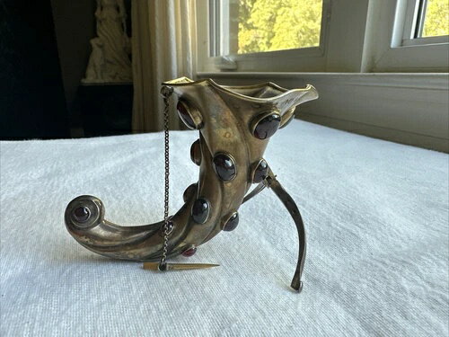 1858年頃 ロンドン スターリングシルバー ヴェルメイユ コルヌコピア型 タッシー マッシー ガーネット付き