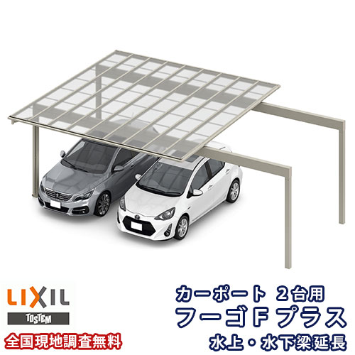 カーポート 2台駐車場 リクシル フーゴFプラス 2台用 屋根連結(段違い) 24-48-57型 W7316(7792)×L6423 熱線吸収ポリカーボネート屋根材