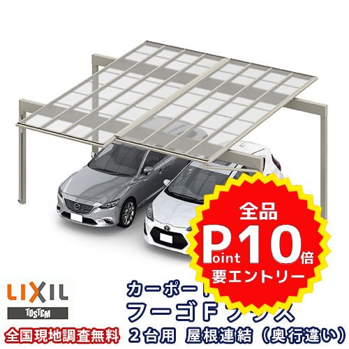 カーポート 2台駐車場 リクシル フーゴFプラス 2台用 屋根連結(奥行違い) 24-54・24-50型 W4956(5988)×L5424 ポリカーボネート屋根材 kenzai