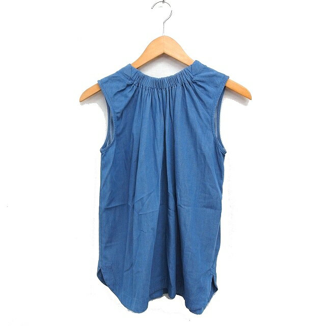 【中古】ナノユニバース nano universe ギャザー ブラウス ノースリーブ 無地 綿混 M ブルー 青 /FT17 レディース 【ベクトル 古着】 250516