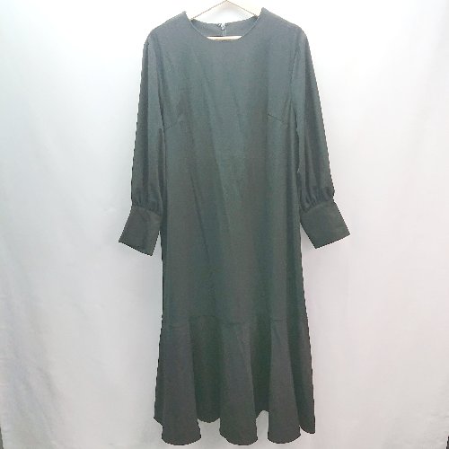 ◇ nano universe シンプル バックジップ さらさら生地 長袖 ロング丈 ワンピース サイズ縦M横XL ブラック レディース E 【中古】