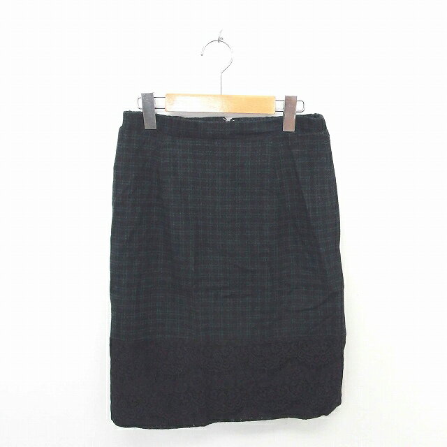 【中古】ナノユニバース nano universe スカート タイト ひざ丈 チェック レース ウール 厚手 F 緑 黒 グリーン ブラック /TT48 レディース 【ベクトル 古着】 200829 ブ..