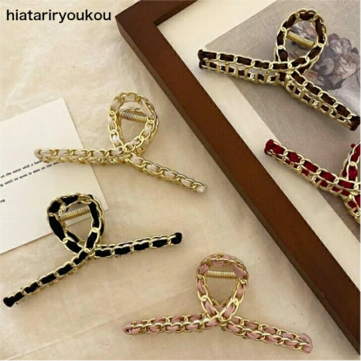 ポイ活応援店内全品ポイント10倍以上!!リボン編み込みチェーンデザイン結びメタルクリップ パーティ アップ 髪留め ヘアアレンジ シンプル バンスクリップ プ..