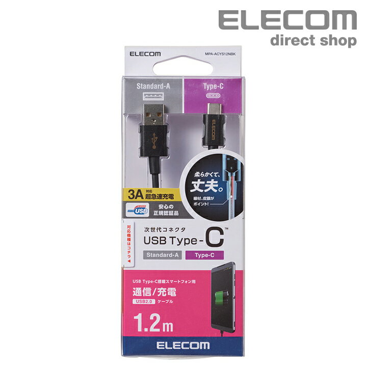 エレコム やわらか 耐久 USB Type-C ケーブル スマートフォン用 USBケーブル USB(A-C) 認証品 1.2m ブラック ELECOM MPA-ACYS12NBK