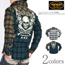 バンソン VANSON 長袖シャツ フライングファイヤースカル 総刺繍 長袖マルチカラーチェックシャツ NVSL-2402