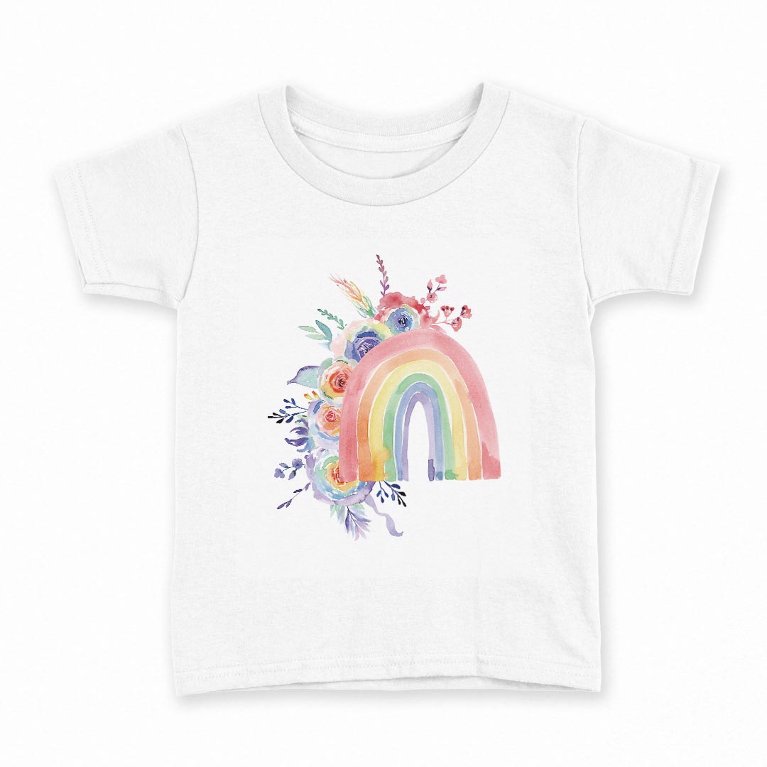 tシャツ キッズ 半袖 白地 デザイン 140 サイズ Tシャツ ティーシャツ T shirt 031712 花 カラフル 虹