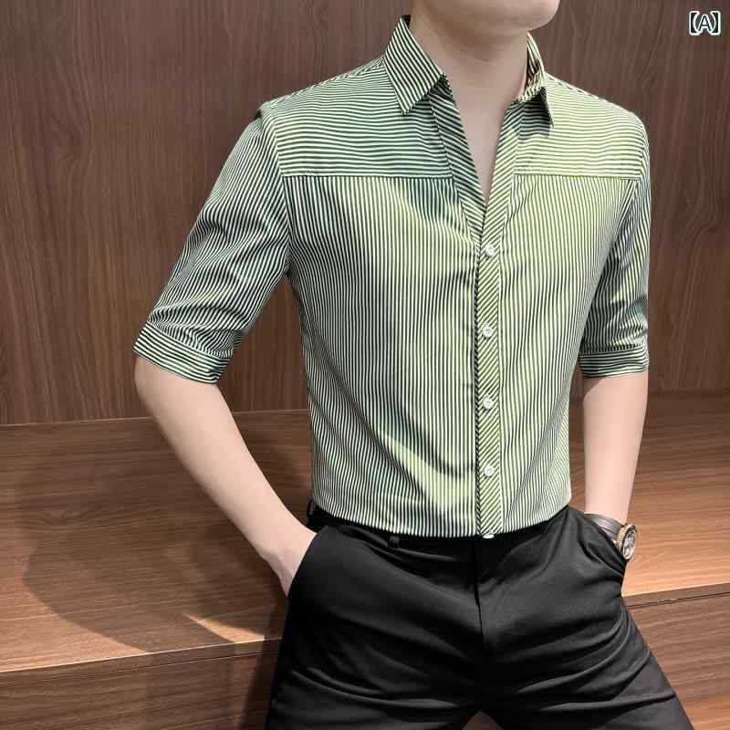 シャツ メンズ ストライプ 七分袖 シャツ 夏 薄手 ホットスタイル カジュアル ファッション ハイエンド 現代的 男性用
