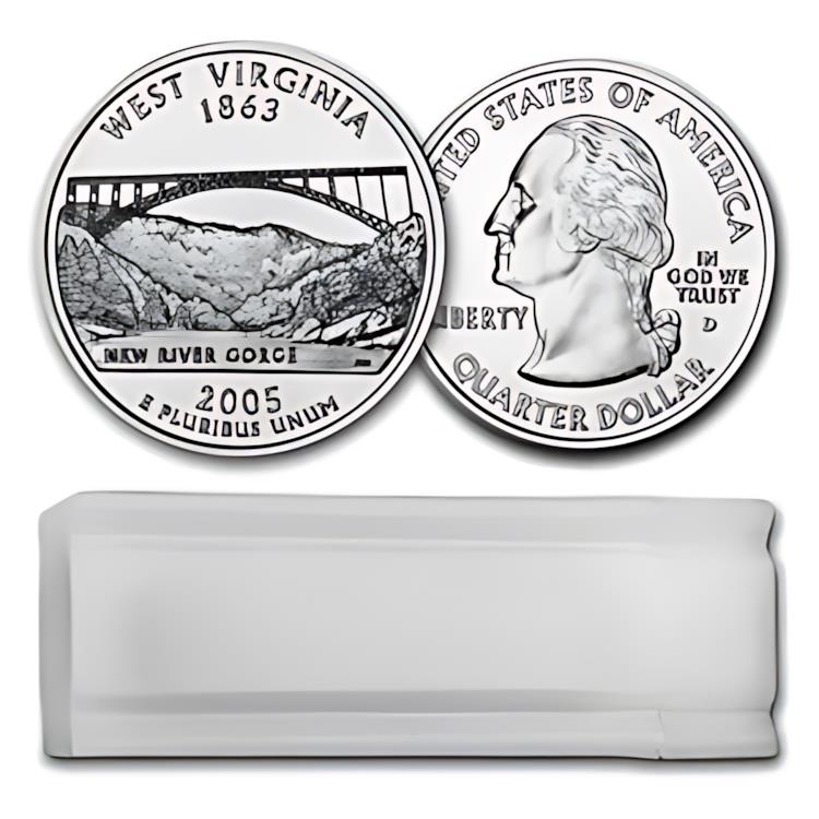2005-D ウェストバージニア州クォーター 40 コインロール BU