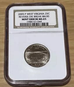 2005-P 25c ウェストバージニア州クォーター リバース ダイ ブレーク反反エラー NGC MS67