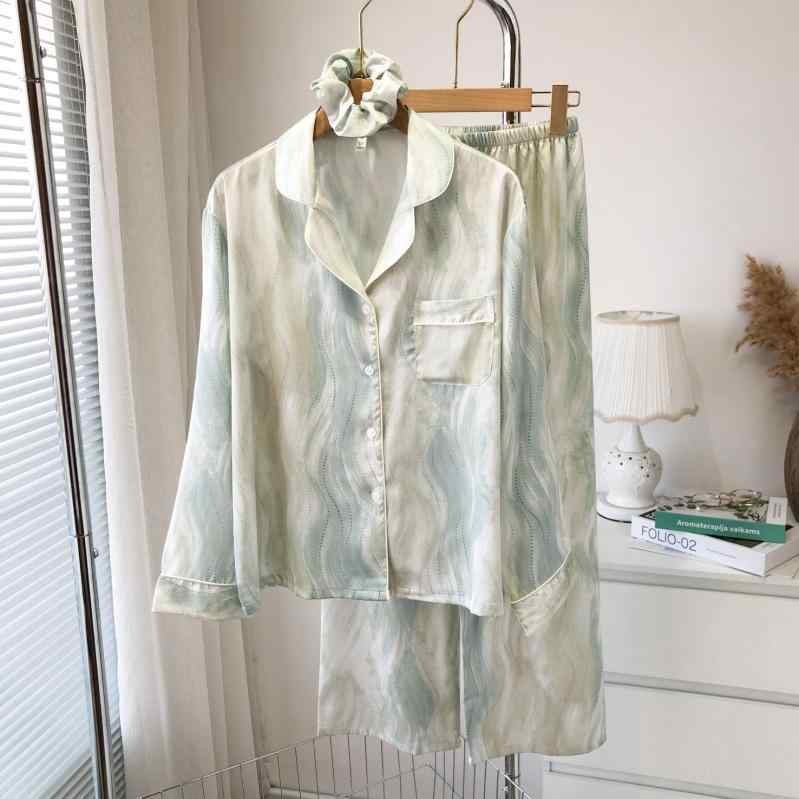 かわいい おしゃれ 安眠 快適 シルク パジャマ レディース 女性用 パジャマ 春秋 2024 夏の ストリーマー ハイエンド スタイル 長袖 ズボン ホーム 服 スーツ