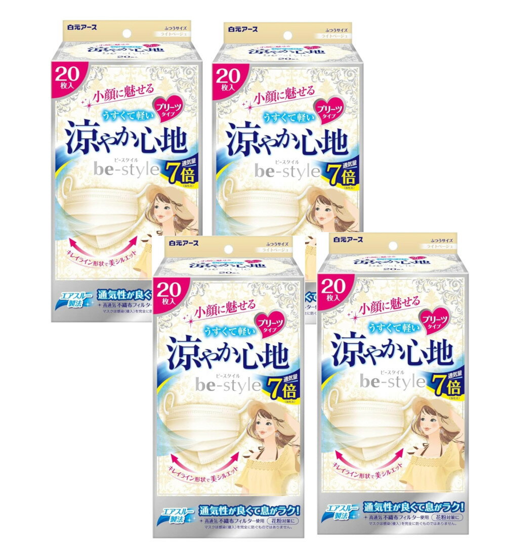 ビースタイル プリーツタイプ 涼やか心地 ライトベージュ 20枚入×4【4個セット】送料無料 夏用マスク 女性用 涼しい 小顔 おしゃれ 不織布 息がしやすい