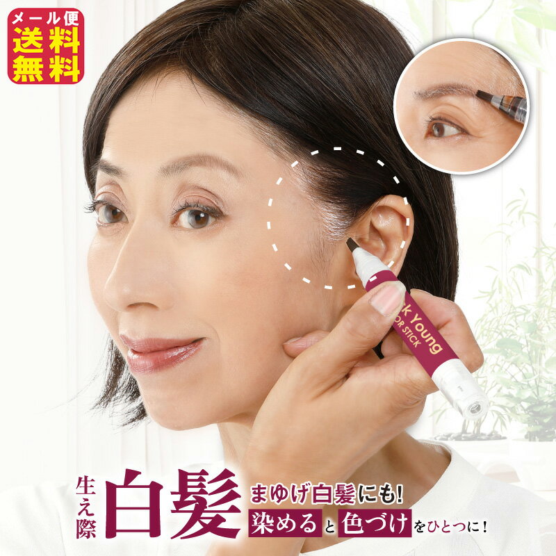 【クイックヤングカラースティック】【メール便 送料無料】【ポイント 2倍~10倍】生え際 白髪隠し スティック 眉毛 もみあげ 白髪染め ピンポイント 白髪 部分染め 毛染..
