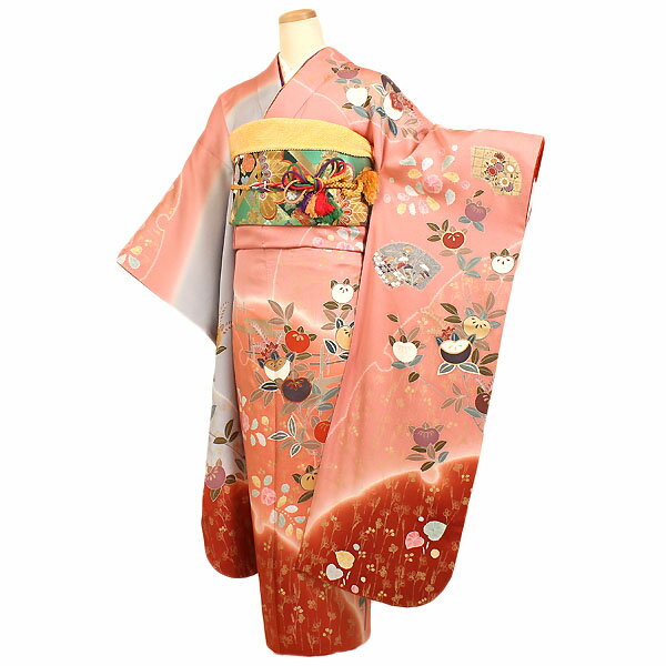 ご予約についてのお問い合わせ 着物のサイズやご予約についてご不明な点がございましたら、電話・メールにてお気軽にお問合せくださいませ。 ■TEL:0120-61-1717 ■MAIL:info@kimono-rental.net 商品詳細 ■地色:ピンク系 / 柄:橘など ■表地・八掛:正絹 / 裏地:合成繊維 ■寸法 身丈:166cm・裄:66.5cm・袖丈:105cm・前幅:24cm・後幅:29cm ■対応サイズ 適応身長:150cm〜160cm位/ 洋服サイズ:11号位まで ヒップまわり:約90cmくらいの方までお召し頂けます。 ※詳しくは着物選びのポイントをご確認ください。 商品画像のコーディネートはイメージです。 帯や小物等は季節・年齢・使用用途にあわせて当店スタッフがコーディネートさせて頂きます。 ご希望の色やイメージなどございましたらご注文時に備考欄へご記入下さい。 (帯締め・帯揚げの色合いはお選び頂けます。) 着付け時に必要な小物は全て揃っ..