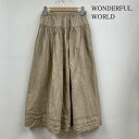 カネコイサオ WONDERFUL WORLD ロング スカート ベージュ 裾ピコフリル使い フレア ウエストゴム リボン 無地 レディース 表記無し ISItems【USED】【古着】【中古】5012..