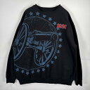 古着 長袖 スウェット ACDC バンド ロック トレーナー プリント 刺繍 大砲 オーバーサイズ 大きいサイズ 2XL ブラック メンズ 【中古】
