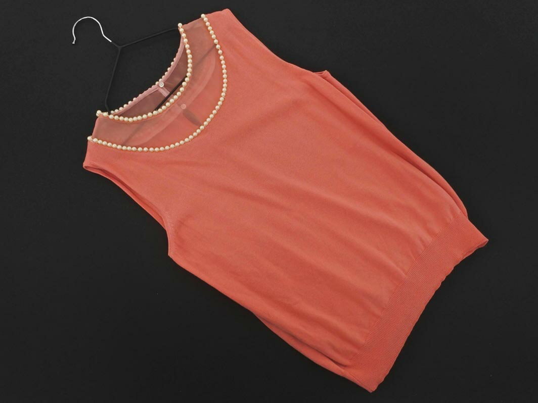 ネコポスOK anatelier アナトリエ パールビーズ 切替 ノースリーブ ニット セーター size38/ピンク ■◆ ☆ fec1 レディース【USED】【中古】【古着】【ブランド古着買取・..
