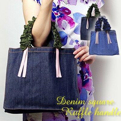 【大人気デニム&Wリボン】Hanatelier★悩殺フリル♪選べる2色デニムのフリルハンドル・スクエアトートバッグ・エコバッグ【◎宅配便のみ】bag020
