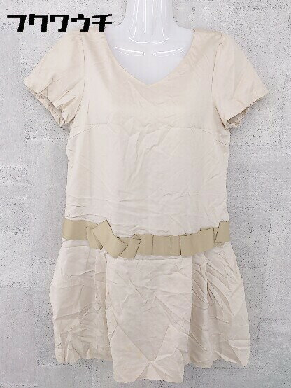◇ anatelier アナトリエ ウエストリボン 半袖 膝下丈 ワンピース サイズ36 ベージュ レディース 【中古】
