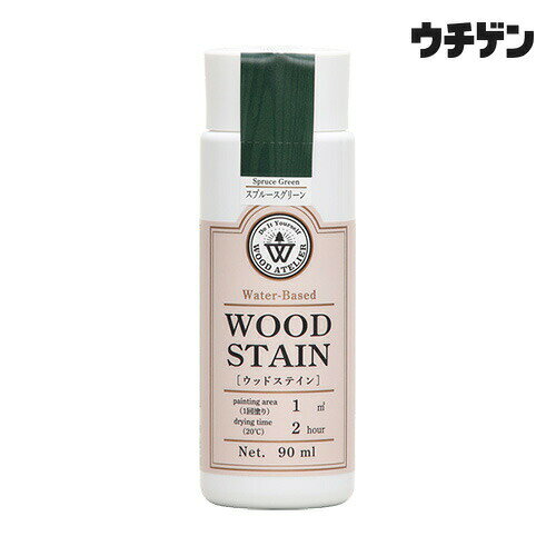 水性ステイン【塗料タイプ】ウッドアトリエ木目をきれいに生かしてしっかり色づけ【用途】無塗装木部の着色に【塗り面積】種類:90ml 塗り面積:1平方メートル(約)種類:180ml 塗り面積:2平方メートル(約)■塗り面積は、1回塗りしたときの目安です。【乾燥時間】約2時間【うすめ液】水(水道水)【特徴】低臭で手軽に使用できる水性着色剤(ステイン)です。食品衛生法に適合しています。顔料の定着性が良く、ステインのみで仕上げても色移りしにくため、単品で仕上げることもできます。えのぐ感覚で色の混ぜ合わせができます。別の色を塗り重ねることで、単色塗りとはひと味違った仕上がりになります。■ニスやペンキに混ぜて使うことはできません■塗料が染み込めない場所には着色できません■使ったハケは水で洗えます。石けんや中性洗剤を使うと、よりきれいに洗うことができます■防水性が必要な作品には「クリアコート」をご利用ください