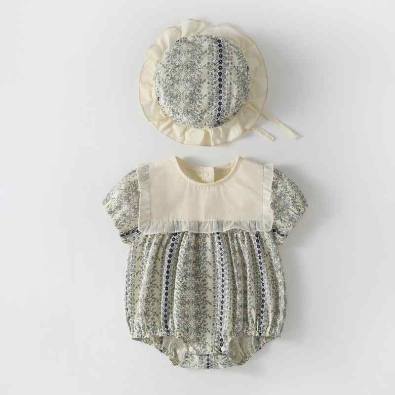 ロンパース ベビー 女の子 春夏 花柄 半袖 フード付き 薄手 綿 コットン 前開き スナップボタン 通気性 涼しい お出かけ 赤ちゃん服 ブルー カバーオール