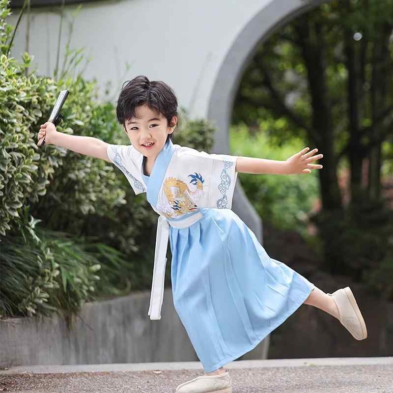 キッズ セットアップ 漢服 男の子 夏 衣装 パフォーマンス 子供 民族 イベント チャイナ風 唐装 赤ちゃん さわやか ブルー