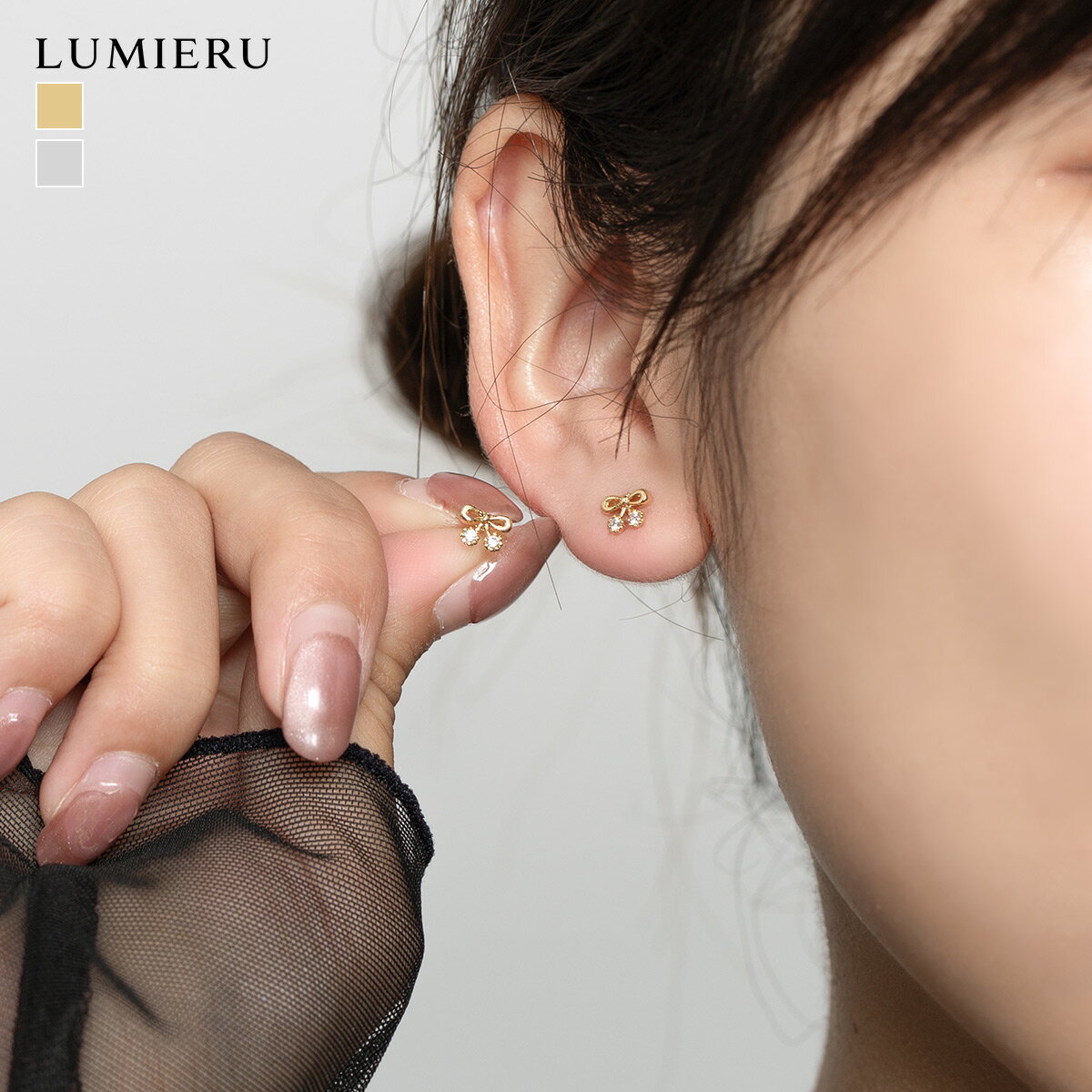ピアス《ストーン付きミニリボンピアス 全2色》 ピアス 金属アレルギー ニッケルフリー レディース ゴールド シルバー チェリー ミニ リボン ストーン付き 小さい キラキ..