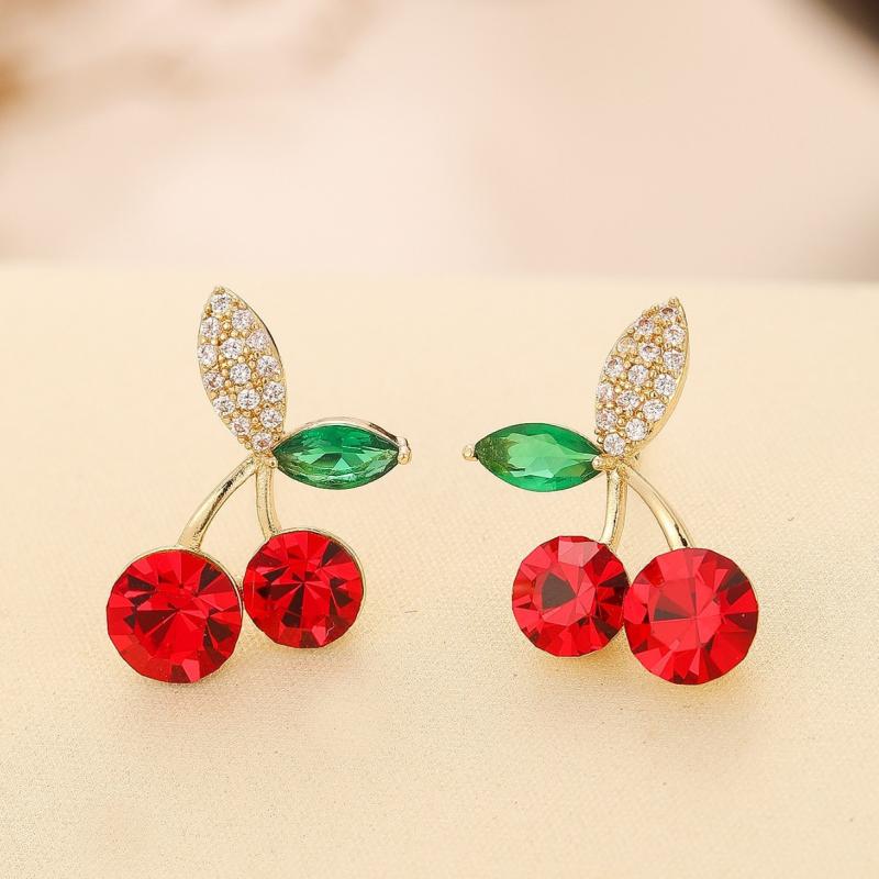 ・素材: 銅・デザイン: 幾何学・加工: 電鍍・カラー: ゴールド、シルバー・モチーフ: チェリー・スタイル: 韓国風・テイスト: フレッシュ、フェミニン・カテゴリ: ピアス・イヤリング・対象: レディース・モチーフ分類: フルーツ、食品