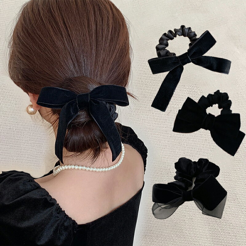 【送料無料】ADOFUNベロア リボン 生地 リボン髪飾り ベロアリボン 黒 蝶結び 髪飾り ベルベット ロング リボン髪飾り リボンフランスのだるいリボン ベルベットの髪ひも..