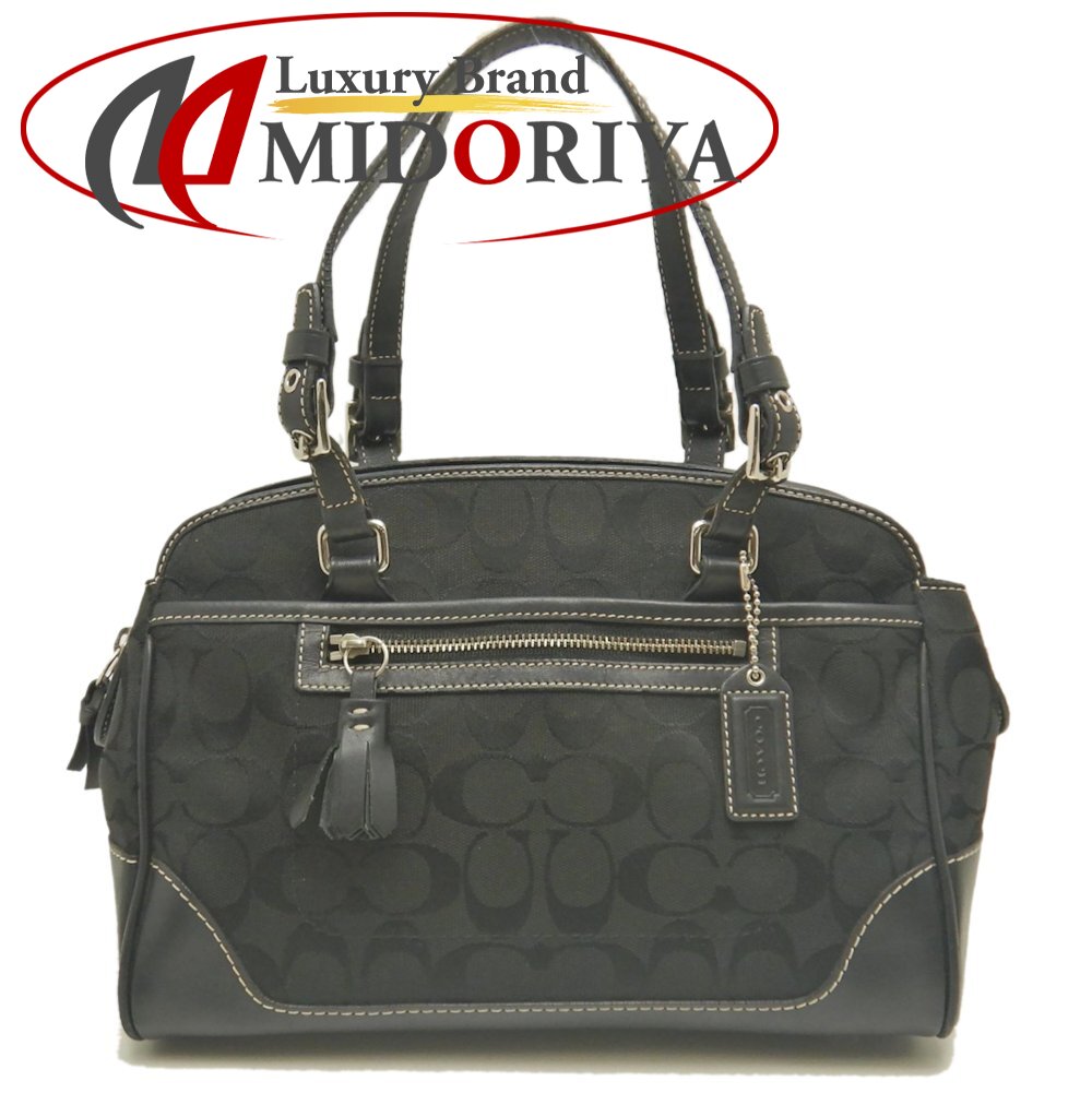 COACH コーチ シグネチャー ハンプトンズ 6828 ハンドバッグ キャンバスxレザー ブラック レディース /253306【中古】