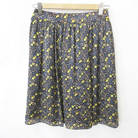 【中古】マッキントッシュフィロソフィー MACKINTOSH PHILOSOPHY スカート フレアー 膝丈 花柄 紺 黄 黒 茶 ネイビー イエロー ブラック ブラウン 38 レディース 【ベク..