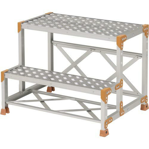 特長:豊富なラインナップを揃え現場ニーズに応える作業用踏台です。表面処理が高級感のあるアルマイト仕上です。(支柱のみ)縞板タイプによりどの方向に対しても滑り止め効果を発揮します。用途:工場・倉庫などでの作業用、高所作業用に。仕様:最大使用質量(kg):150段高(mm):300天板高さ(m):0.6天板寸法(mm):800×400設置寸法(mm)間口:818設置寸法(mm)奥行:628段数(段):2踏ざん踏面幅(mm):200踏面タイプ:縞板組立式材質/仕上:本体:アルミ合金セット内容/付属品:注意:
